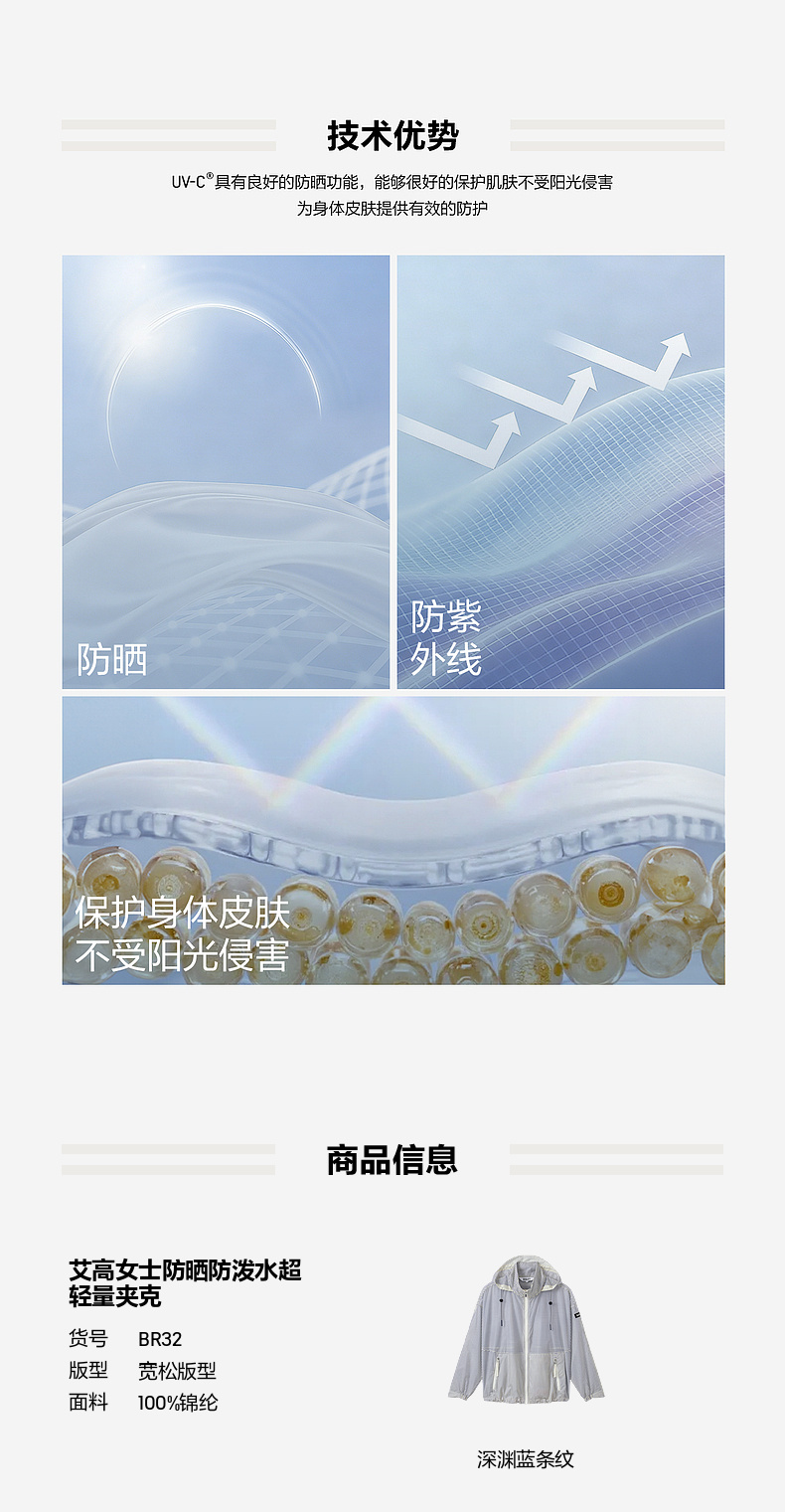 防晒防泼双效 轻盈无压 女士 条纹夹克BR32